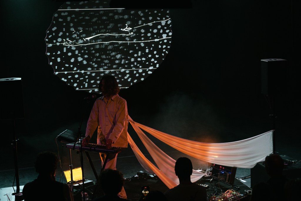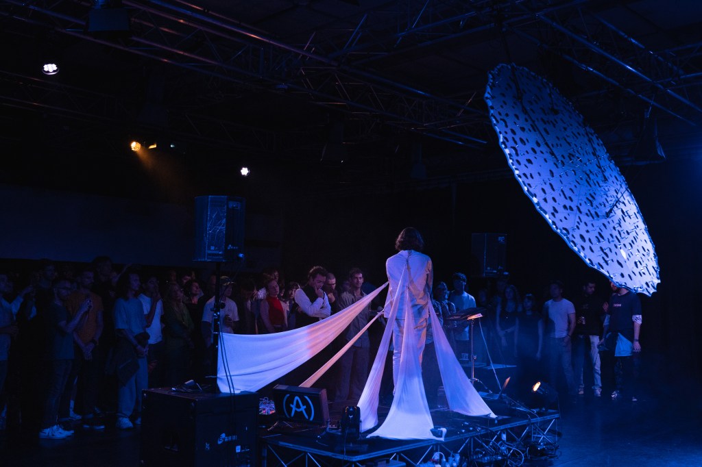 Developed through a three-month multidisciplinary collaboration with visual artists and designers, the work is structured around an audio-reactive 3D light sculpture activated through projection mapping. Sound and image are treated as interdependent mediums in non-hierarchical relation, producing a continuously reconfigured spatial field in which perception is modulated without resolution or final signification.